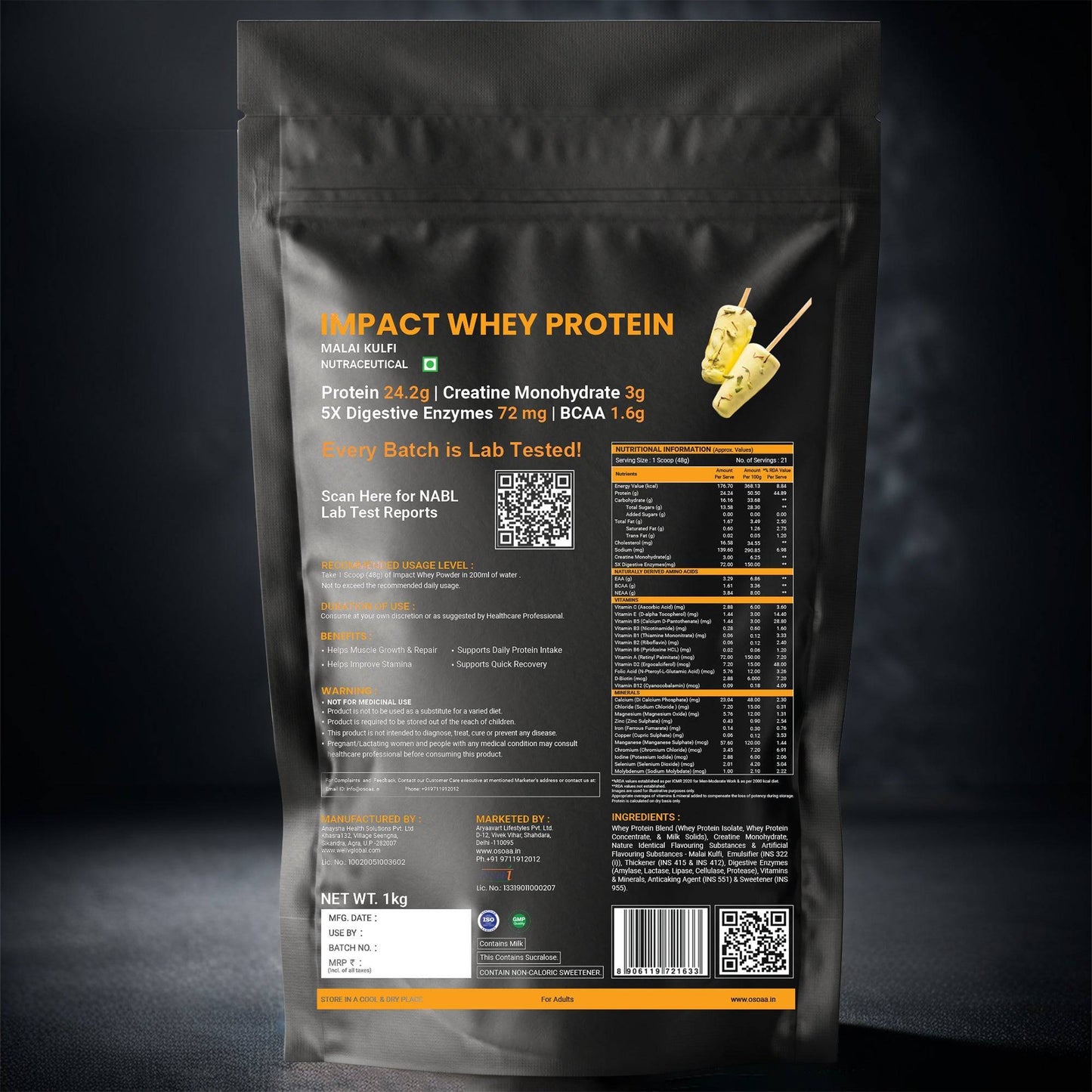 OSOAA Impact Whey Protein (Trustified)- 24.2g Protein with 3g Creatine
